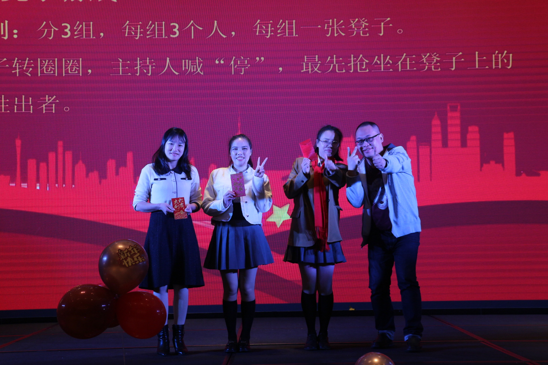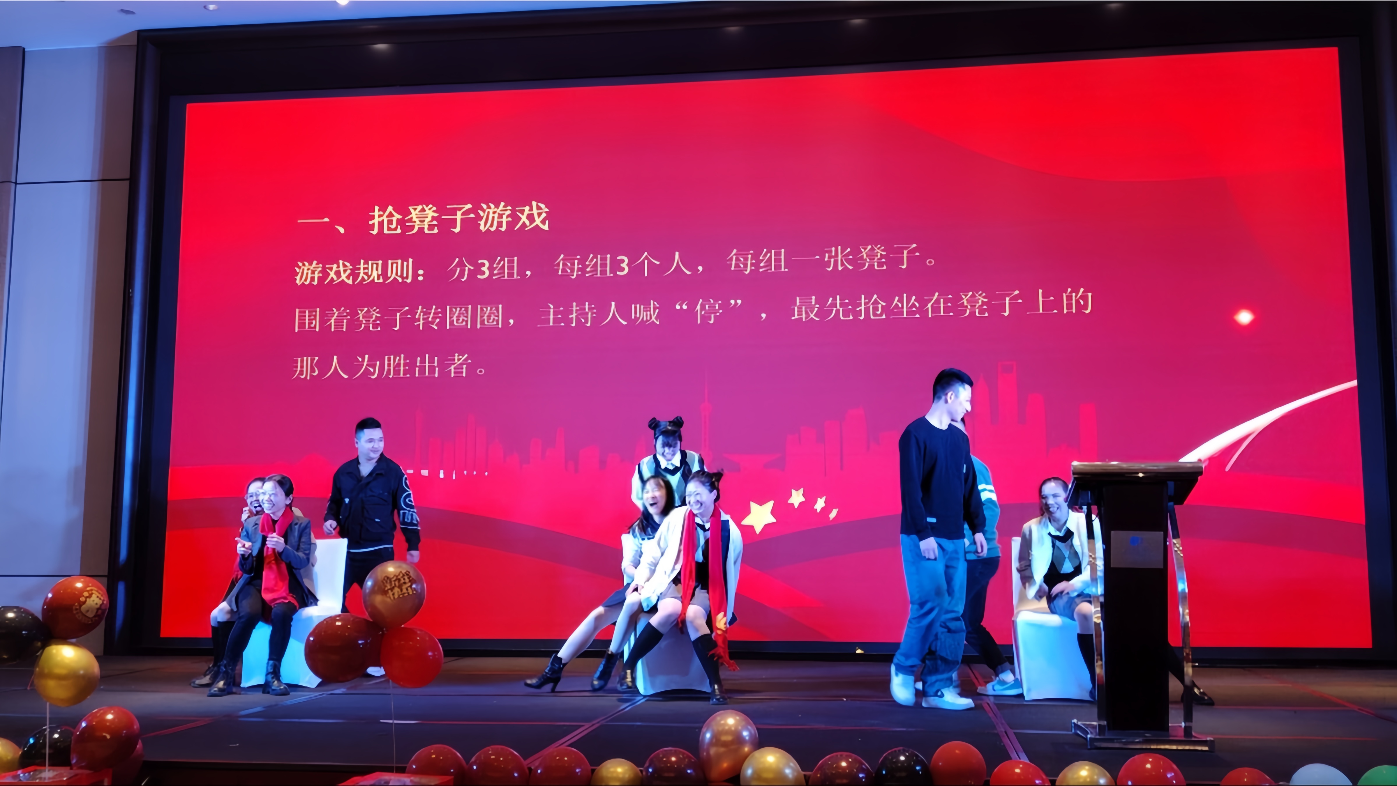 在年會的歡樂氛圍中,還有兩個(gè)充滿趣味性的游戲——搶凳子和蘿卜蹲。隨著歡快的音樂聲響起,搶凳子游戲正式開始,參與者們圍繞著凳子轉(zhuǎn)圈,眼睛緊盯著凳子,耳朵聆聽著主持的口令,當(dāng)音樂突然停止時(shí),他們需要迅速找到一個(gè)凳子坐下。一時(shí)間,現(xiàn)場充滿了歡笑聲和緊張的氣氛。緊接著是充滿趣味性的蘿卜蹲游戲,參與者們展現(xiàn)出活力的身姿。他們根據(jù)指定的口號,一蹦一跳地輪流蹲下起立,仿佛一群活潑的蘿卜在舞動(dòng)。在這個(gè)游戲中,不僅鍛煉了身體協(xié)調(diào)能力,還考驗(yàn)著團(tuán)隊(duì)之間的默契。