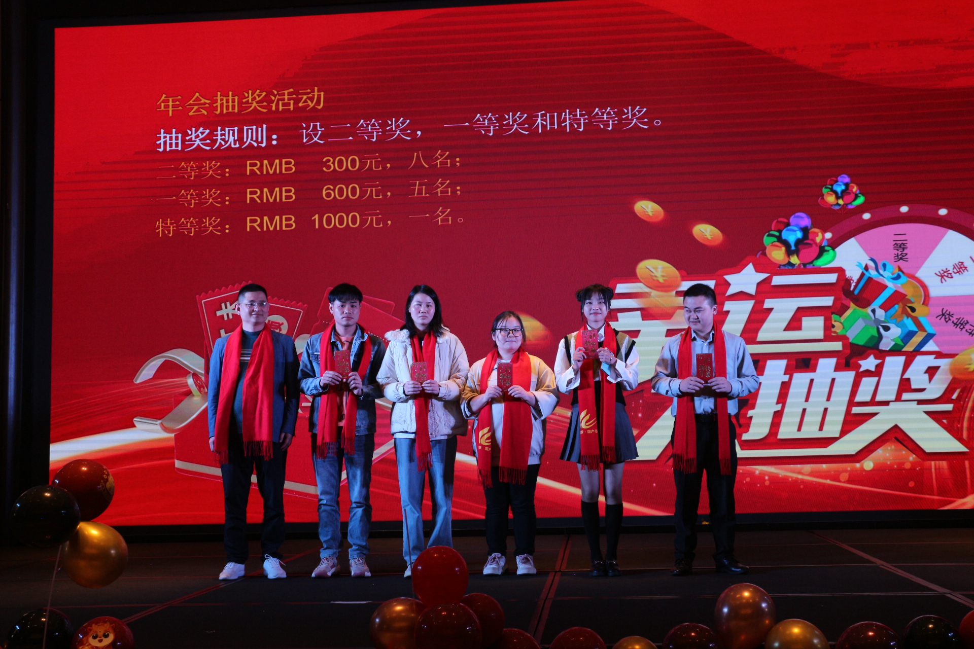 首先揭曉的是二等獎(jiǎng),RMB 300元,共有八名幸運(yùn)兒。當(dāng)主持人逐一念出他們的名字時(shí),每一張面孔都綻放出燦爛的笑容,他們的喜悅之情溢于言表。緊接著是一等獎(jiǎng)RMB 600元,五名同事欣喜若狂地沖上臺,他們的笑聲和歡呼聲點(diǎn)燃了整個(gè)現(xiàn)場。