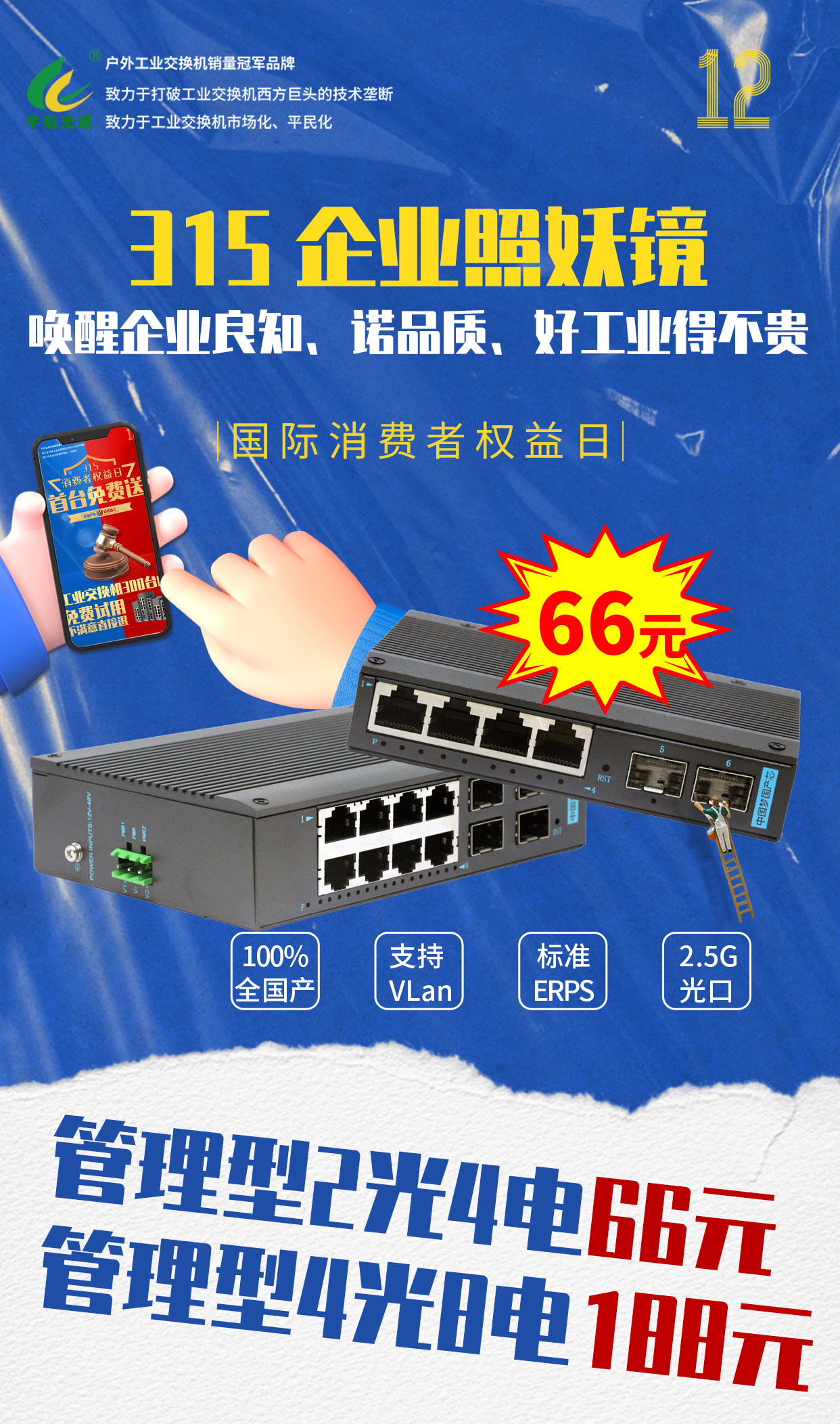 宇航始終堅守品質至上的原則,從源頭把控產品質量,確保每一臺交換機都能達到工業級的嚴苛標準。在這個特殊的315消費者權益日,宇航工業級交換機以消費者需求為核心,以品質為基石,以實實在在的優惠和過硬的品質,回饋廣大消費者的信任與支持!