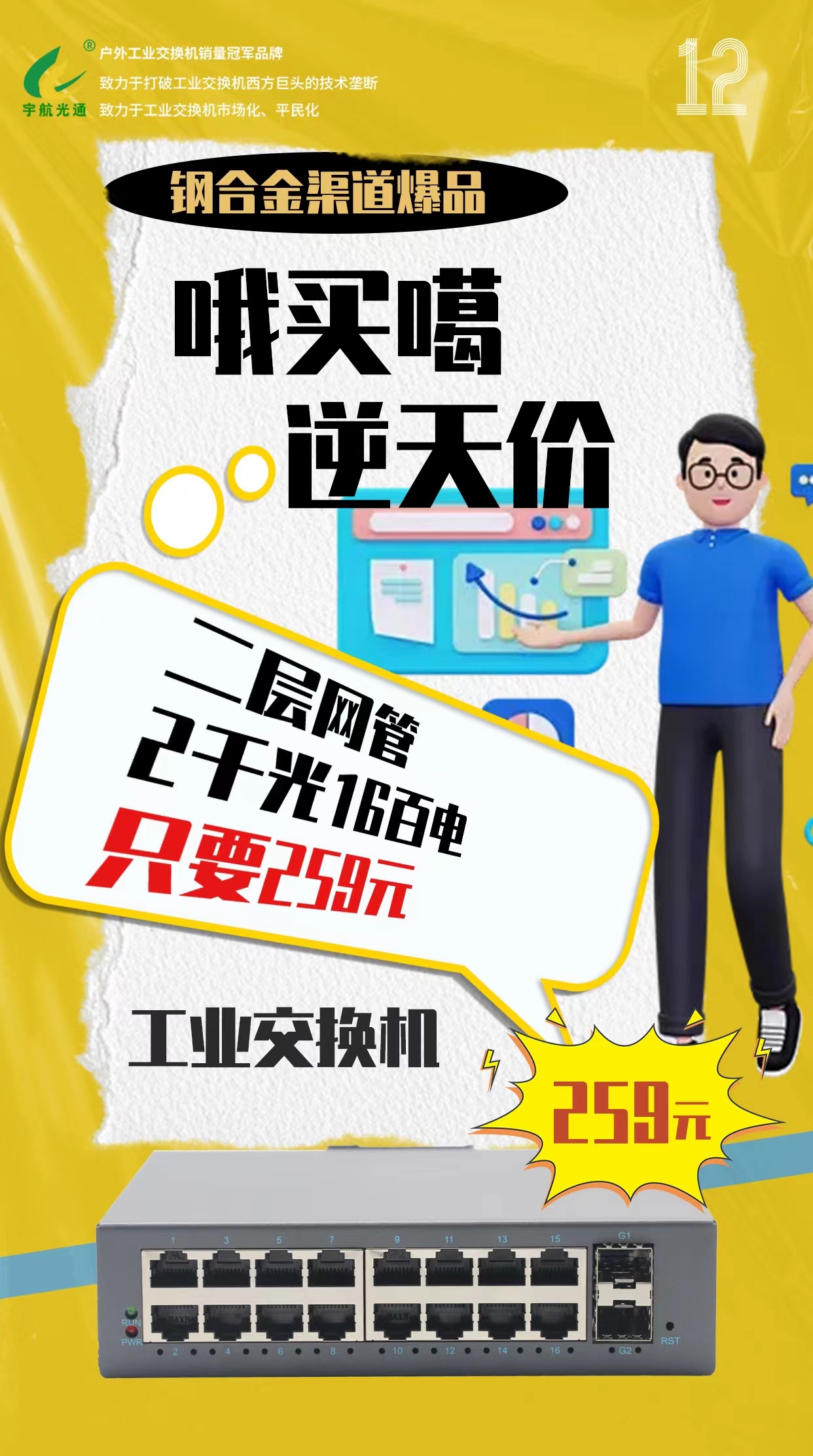 值得一提的是,宇航工業交換機在本次大會上重點展示了最新推出的鋼合金渠道爆品系列產品。這一系列產品是宇航在深入研究市場需求和競爭態勢的基礎上,應市場要求推出的全國產鋼合金系列產品。該系列產品不僅繼承了宇航工業交換機一貫的高品質、高可靠性特點,還在價格上更具競爭力,為市場端和客戶提供了更多元化的選擇。