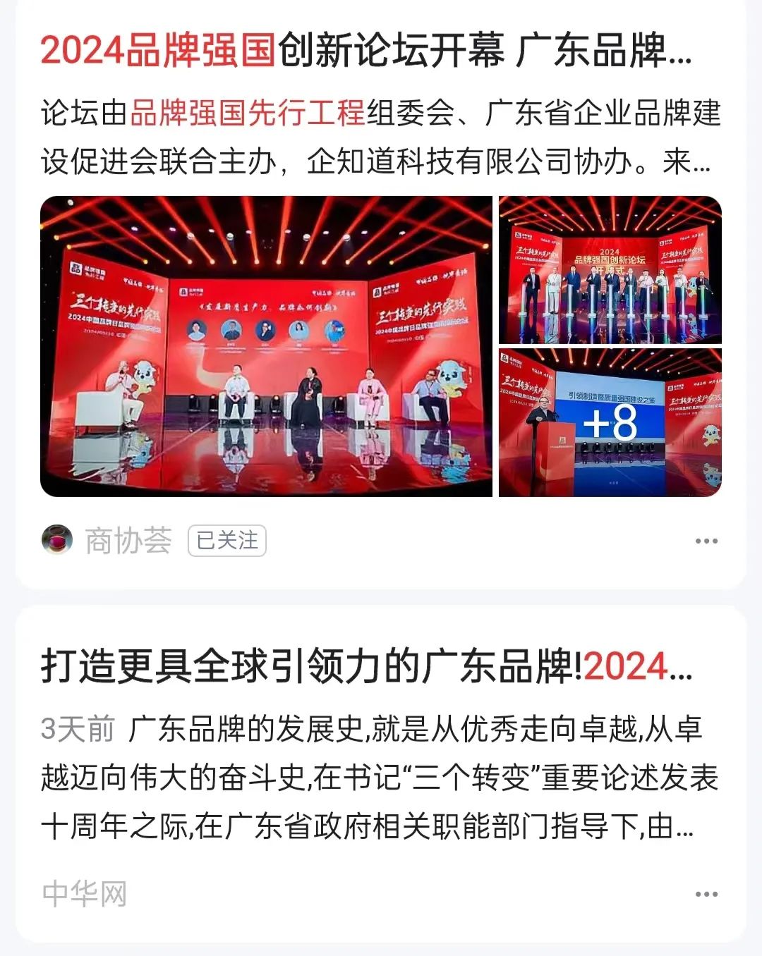 2024年5月10-11日,2024首屆品牌強國創新論壇,分別在廣東廣播電視臺南星演播廳和廣東品牌培育創新基地舉行開幕式和主題論壇,宇航工業交換機成功入選品牌強國先行工程“國貨之光”。