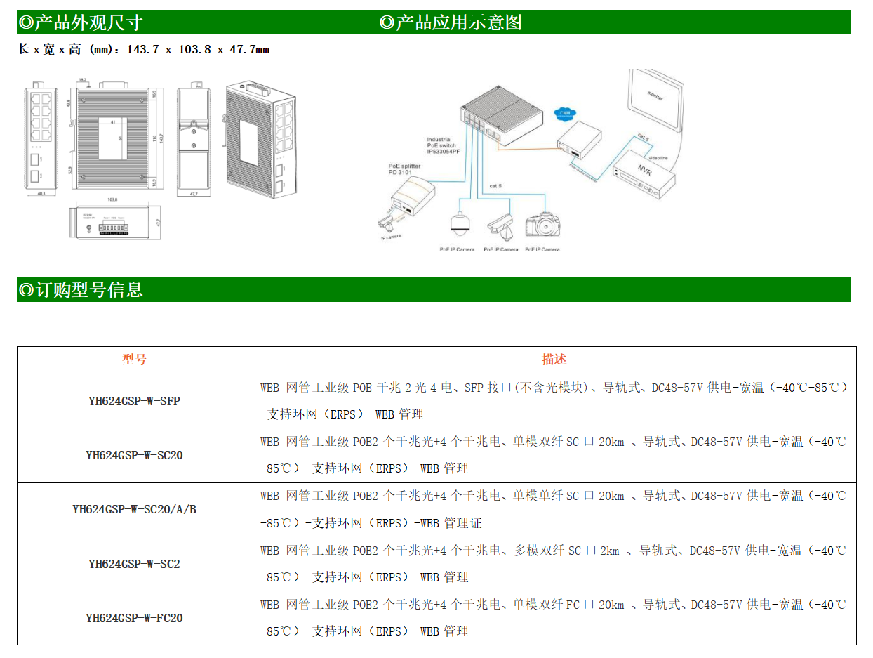 YH600-24GSP-W系列WEB管理工業(yè)級(jí)以太網(wǎng)PoE交換機(jī),產(chǎn)品符合FCC、CE、ROHS標(biāo)準(zhǔn),支持工業(yè)現(xiàn)場(chǎng)所需的以太網(wǎng)二層協(xié)議,保證通信網(wǎng)絡(luò)的穩(wěn)定性。該系列交換機(jī)采用低功耗、無風(fēng)扇設(shè)計(jì),確保無噪聲干擾,同時(shí)支持-40~85℃工作溫度和良好的EMC電磁兼容性能,保證在惡劣的工業(yè)環(huán)境中保持穩(wěn)定的工作,為工廠自動(dòng)化,智能交通,視頻監(jiān)控等工業(yè)應(yīng)用領(lǐng)域組建快速穩(wěn)定的網(wǎng)絡(luò)終端接入網(wǎng)絡(luò)提供安全可靠的解決方案。
