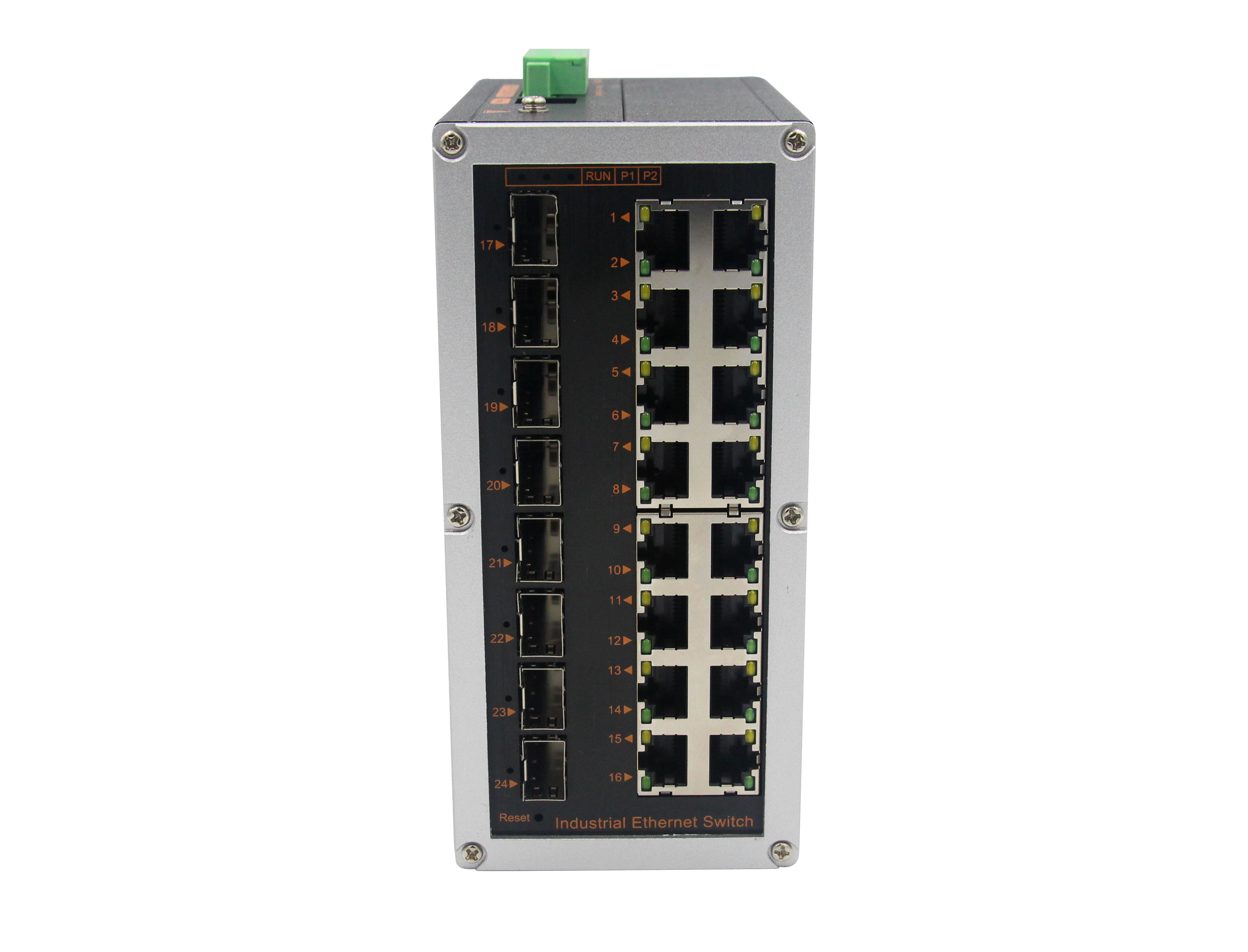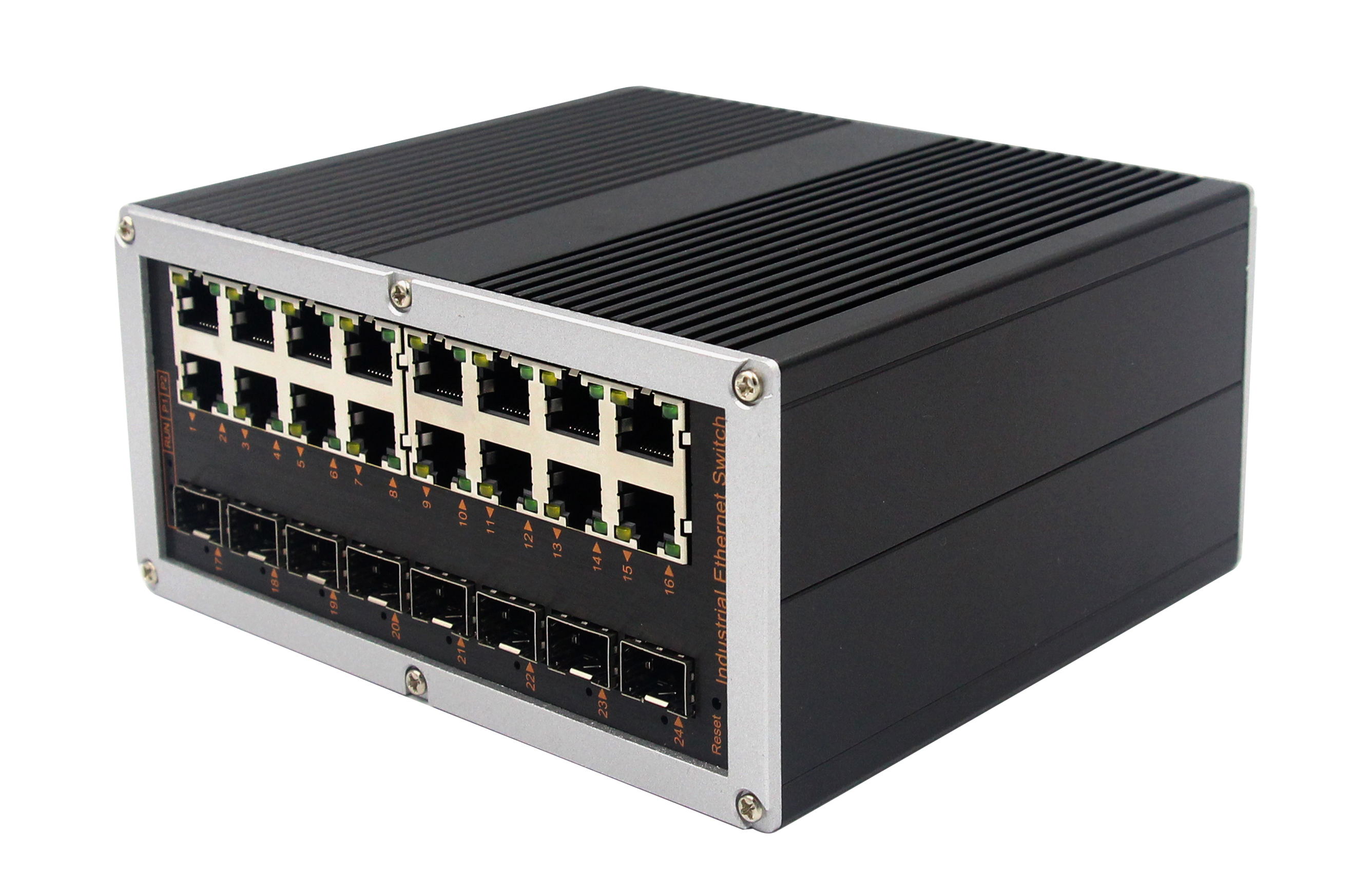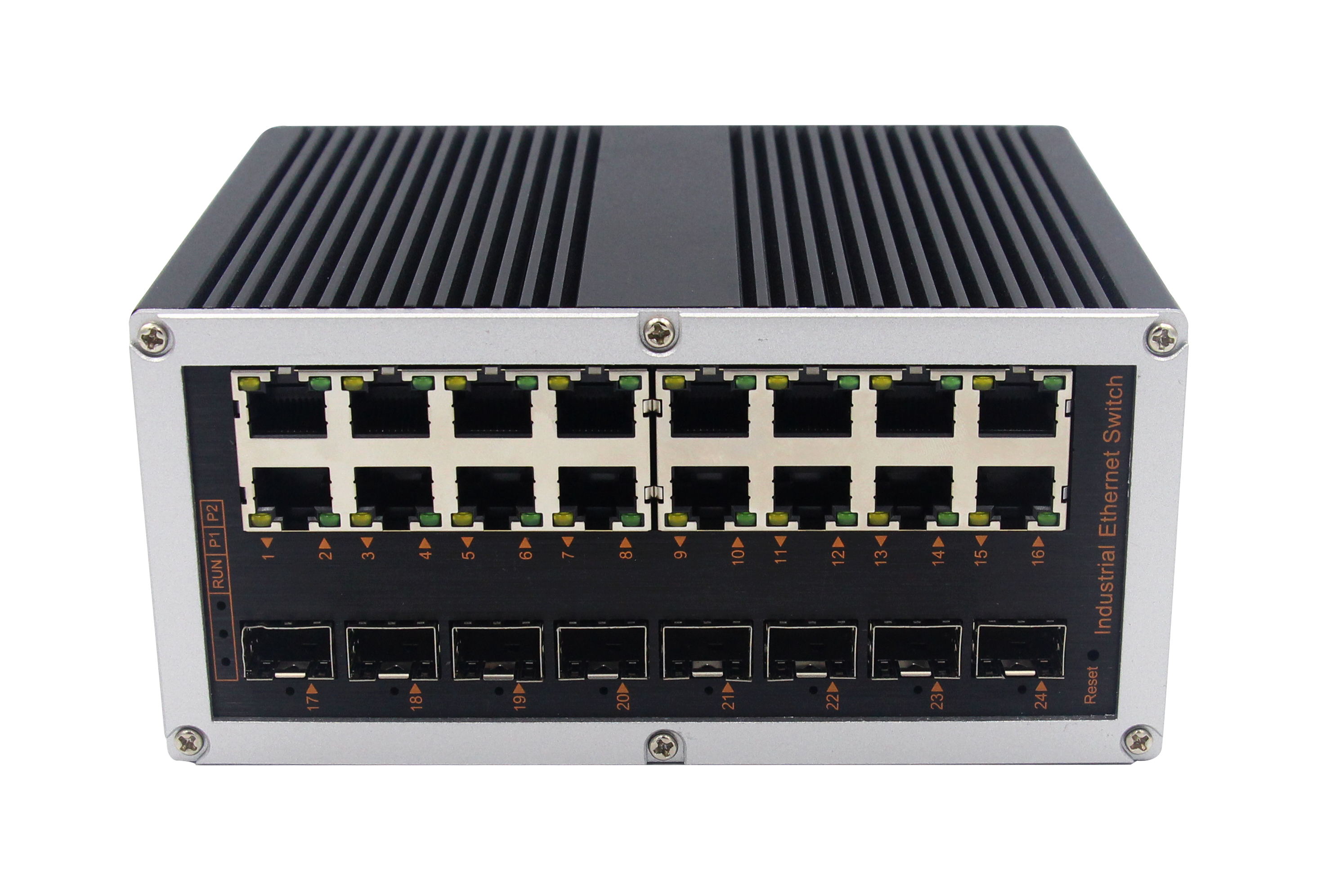 首頁產品系列行業標準&渠道增值產品鋁合金系列導軌式鋁合金弱三層管理型工業交換機網管工業級 千兆8光16電-SFP