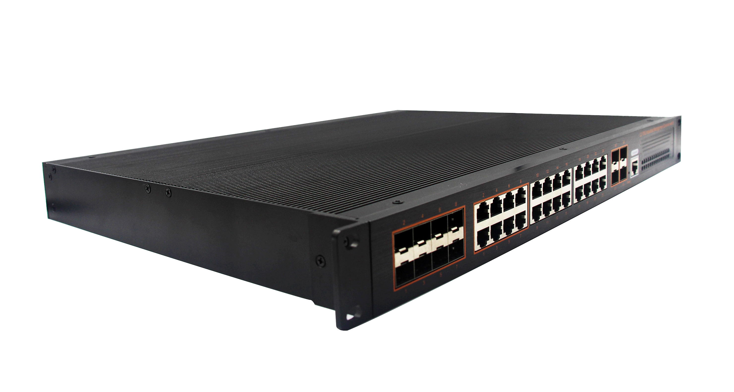 24千兆電+8千兆光+4個萬兆光萬兆網管型機架式工業匯聚交換機 |