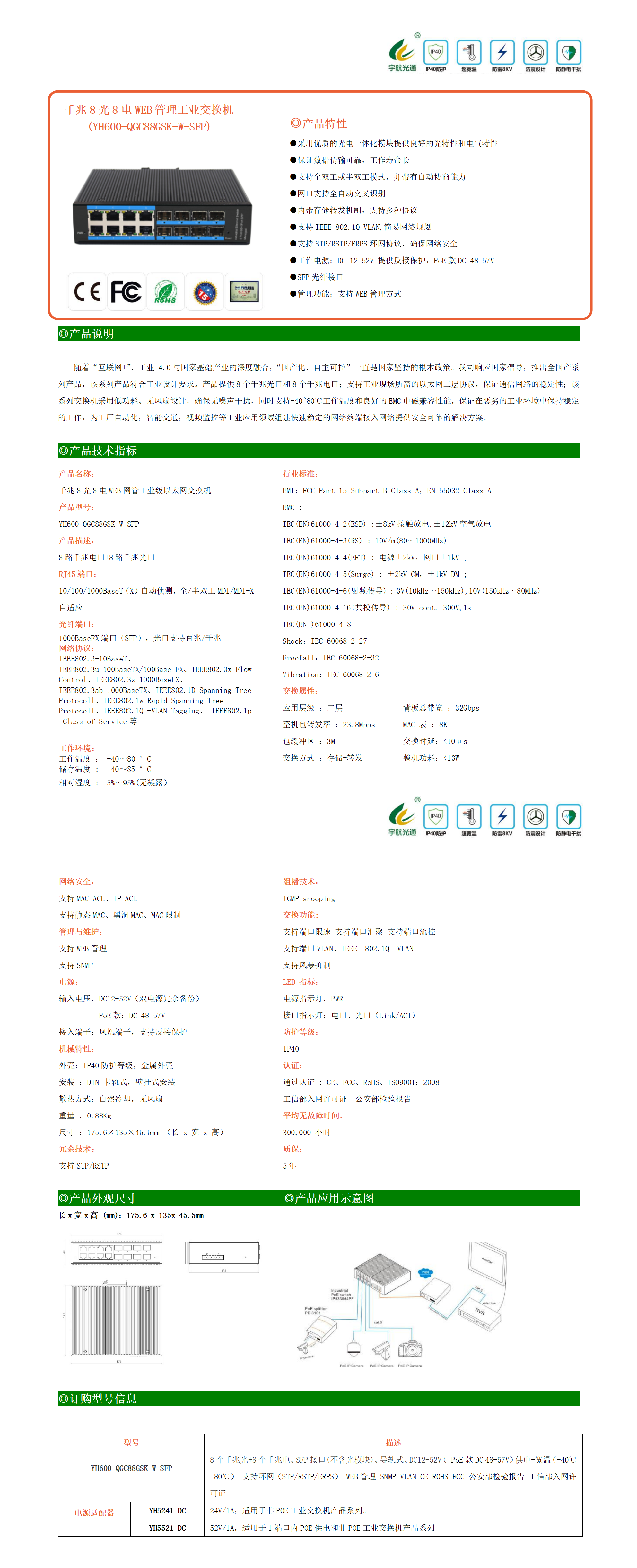 隨著“互聯(lián)網(wǎng)+”、工業(yè) 4.0與國家基礎(chǔ)產(chǎn)業(yè)的深度融合,“國產(chǎn)化、自主可控”一直是國家堅(jiān)持的根本政策。我司響應(yīng)國家倡導(dǎo),推出全國產(chǎn)系列產(chǎn)品,該系列產(chǎn)品符合工業(yè)設(shè)計(jì)要求。產(chǎn)品提供8個(gè)千兆光口和8個(gè)千兆電口;支持工業(yè)現(xiàn)場所需的以太網(wǎng)二層協(xié)議,保證通信網(wǎng)絡(luò)的穩(wěn)定性;該系列交換機(jī)采用低功耗、無風(fēng)扇設(shè)計(jì),確保無噪聲干擾,同時(shí)支持-40~80℃工作溫度和良好的EMC電磁兼容性能,保證在惡劣的工業(yè)環(huán)境中保持穩(wěn)定的工作,為工廠自動(dòng)化,智能交通,視頻監(jiān)控等工業(yè)應(yīng)用領(lǐng)域組建快速穩(wěn)定的網(wǎng)絡(luò)終端接入網(wǎng)絡(luò)提供安全可靠的解決方案。