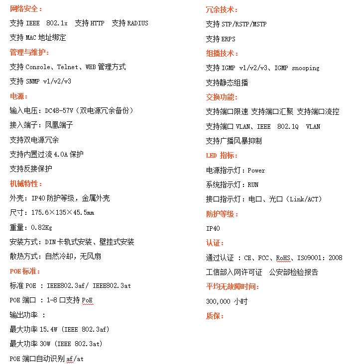 ●安全管理:支持ACL訪問控制列表,支持802.1X