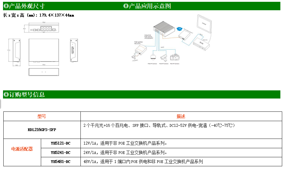 RDL216GFS系列網(wǎng)管型工業(yè)以太網(wǎng)交換機(jī),產(chǎn)品符合FCC、CE、ROHS標(biāo)準(zhǔn)。支持2個(gè)千兆光口和16個(gè)百兆電口,支持工業(yè)現(xiàn)場所需的以太網(wǎng)二層協(xié)議,保證通信網(wǎng)絡(luò)的穩(wěn)定性;該系列交換機(jī)采用低功耗、無風(fēng)扇設(shè)計(jì),確保無噪聲干擾,同時(shí)支持-40~75℃工作溫度和良好的EMC電磁兼容性能,保證在惡劣的工業(yè)環(huán)境中保持穩(wěn)定的工作,為工廠自動(dòng)化,智能交通,視頻監(jiān)控等工業(yè)應(yīng)用領(lǐng)域組建快速穩(wěn)定的網(wǎng)絡(luò)終端接入網(wǎng)絡(luò)提供安全可靠的解決方案。