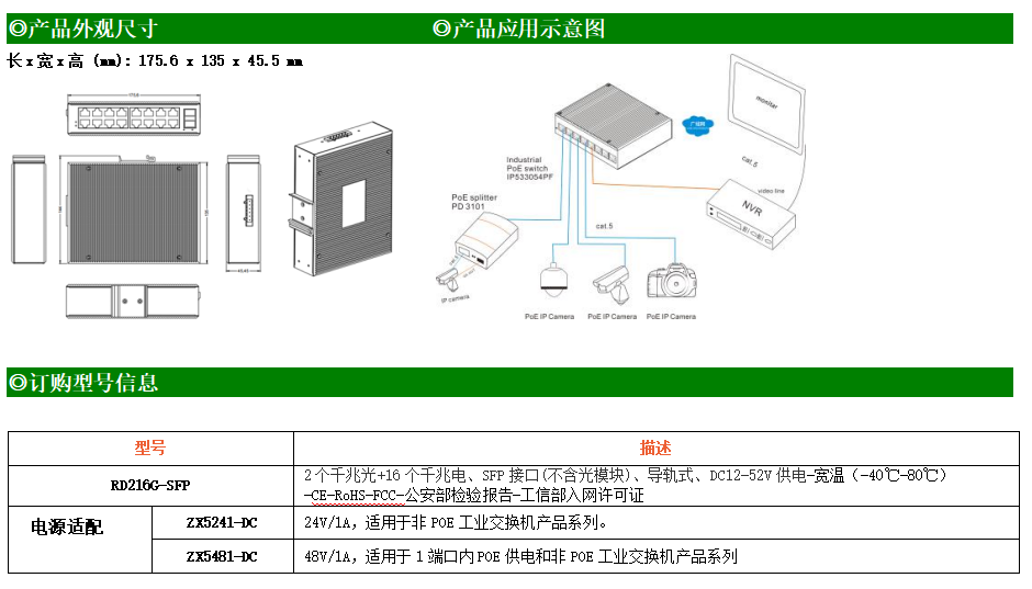 ZX216GFS系列網管型工業以太網交換機,產品符合FCC、CE、ROHS標準。支持2個千兆光口和16個百兆電口,支持工業現場所需的以太網二層協議,保證通信網絡的穩定性;該系列交換機采用低功耗、無風扇設計,確保無噪聲干擾,同時支持-40~80℃工作溫度和良好的EMC電磁兼容性能,保證在惡劣的工業環境中保持穩定的工作,為工廠自動化,智能交通,視頻監控等工業應用領域組建快速穩定的網絡終端接入網絡提供安全可靠的解決方案。