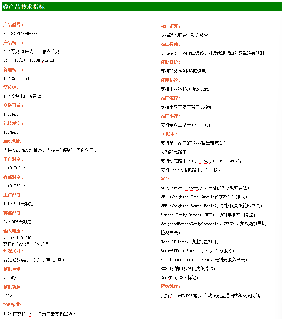 ●網(wǎng)絡(luò)冗余:支持STP/RSTP/MSTP,支持ERPS(自愈時(shí)間<20ms)