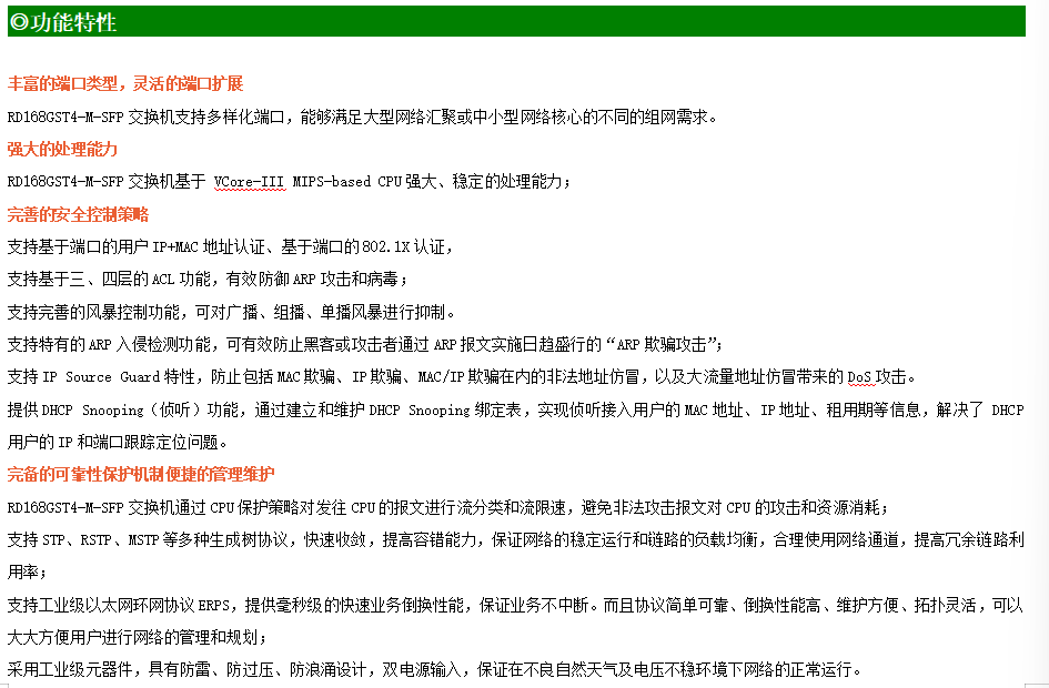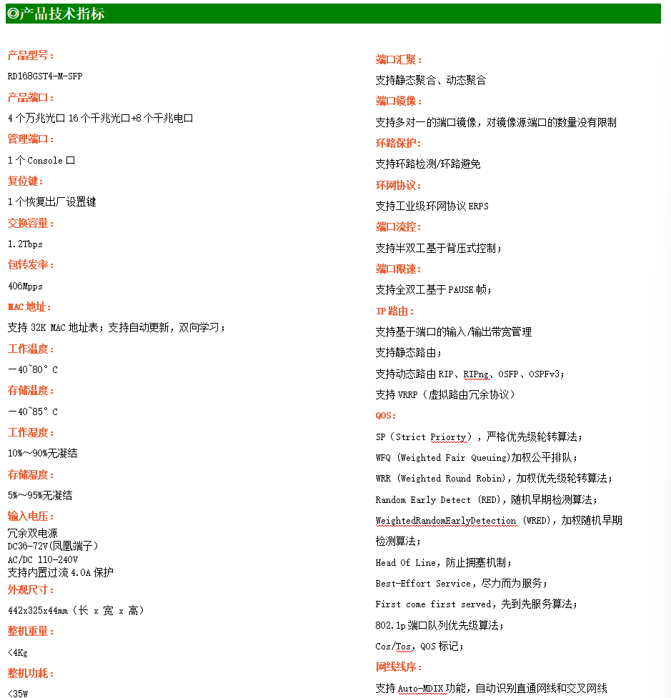 ●網絡冗余:支持STP/RSTP/MSTP,支持ERPS(自愈時間<20ms)