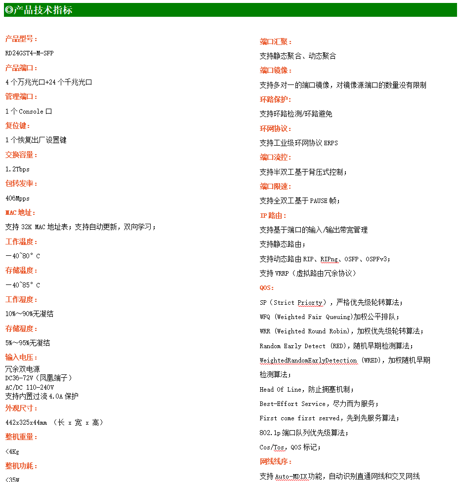 ●網絡冗余:支持STP/RSTP/MSTP,支持ERPS(自愈時間<20ms)