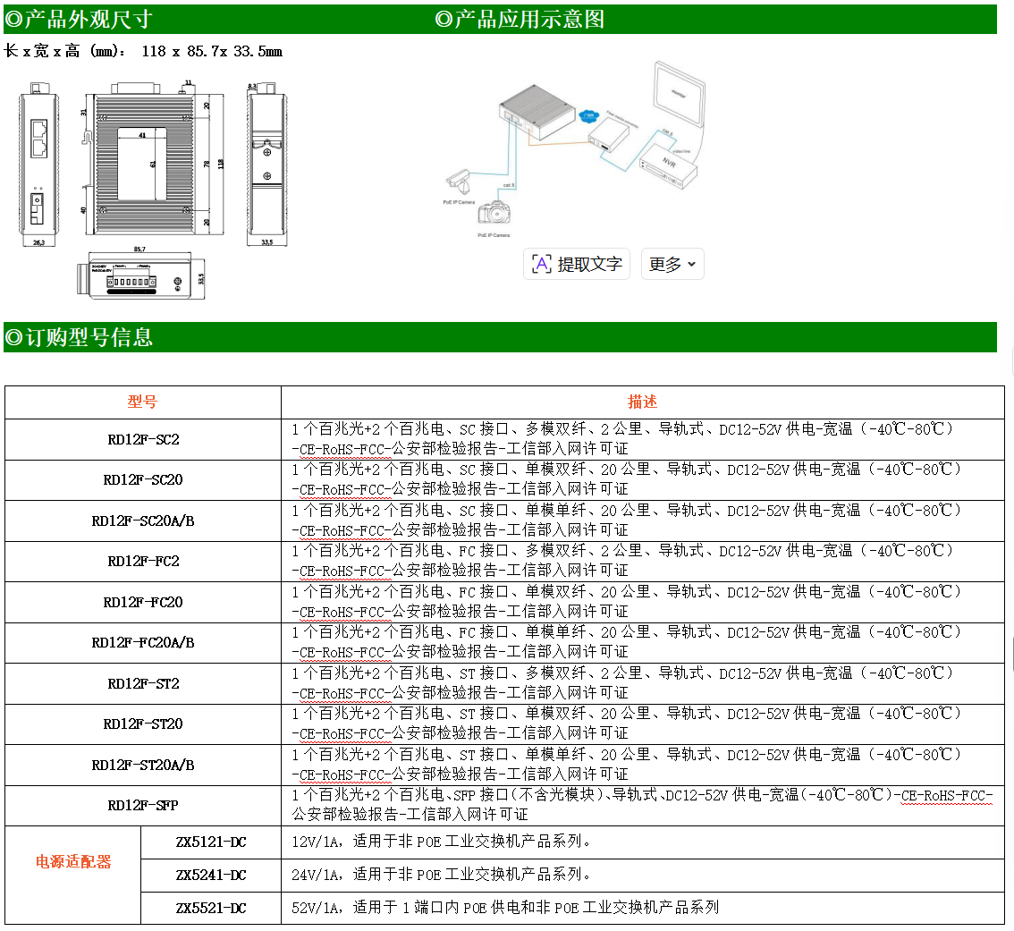 ●使用SC/FC/ST/SFP光纖接口