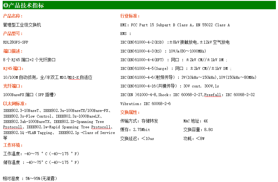 RDL28GFS-SFP是網(wǎng)管型工業(yè)以太網(wǎng)交換機(jī),產(chǎn)品符合FCC、CE、ROHS標(biāo)準(zhǔn)。支持2個(gè)千兆光口和8個(gè)百兆電口,支持一路console口;支持工業(yè)現(xiàn)場所需的以太網(wǎng)二層協(xié)議,保證通信網(wǎng)絡(luò)的穩(wěn)定性;該系列交換機(jī)采用低功耗、無風(fēng)扇設(shè)計(jì),確保無噪聲干擾,同時(shí)支持-40~75℃工作溫度和良好的EMC電磁兼容性能,保證在惡劣的工業(yè)環(huán)境中保持穩(wěn)定的工作,為工廠自動化,智能交通,視頻監(jiān)控等工業(yè)應(yīng)用領(lǐng)域組建快速穩(wěn)定的網(wǎng)絡(luò)終端接入網(wǎng)絡(luò)提供安全可靠的解決方案。