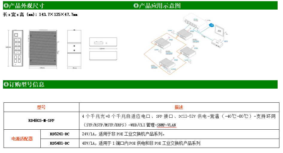 RD48GS-M-SFP是網(wǎng)管型工業(yè)以太網(wǎng)交換機,產(chǎn)品支持4個千兆光口和8個千兆電口;支持工業(yè)現(xiàn)場所需的以太網(wǎng)二層協(xié)議,保證通信網(wǎng)絡(luò)的穩(wěn)定性;該系列交換機采用低功耗、無風(fēng)扇設(shè)計,確保無噪聲干擾,同時支持-40~80℃工作溫度和良好的EMC電磁兼容性能,保證在惡劣的工業(yè)環(huán)境中保持穩(wěn)定的工作,為工廠自動化,智能交通,視頻監(jiān)控等工業(yè)應(yīng)用領(lǐng)域組建快速穩(wěn)定的網(wǎng)絡(luò)終端接入網(wǎng)絡(luò)提供安全可靠的解決方案。