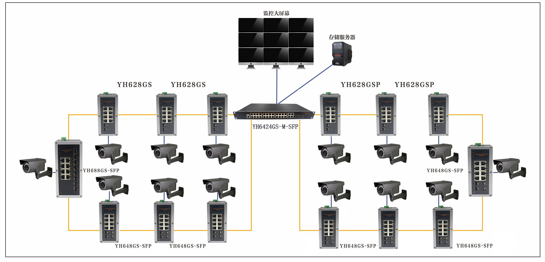 宇航道路交通檢測系統(tǒng)解決方案: 采用YH6424GS-M-SFP,YH688GS-SFP,YH628GSP,YH648GS-SFP系統(tǒng)抓拍的點全YH628GS-SFP形成環(huán)網(wǎng),直接在中心房采用千兆工業(yè)交換機進行數(shù)據(jù)匯聚。保障各個監(jiān)控點監(jiān)控到位,與正常通信提高網(wǎng)絡數(shù)據(jù)傳輸?shù)母咝浴?/p>