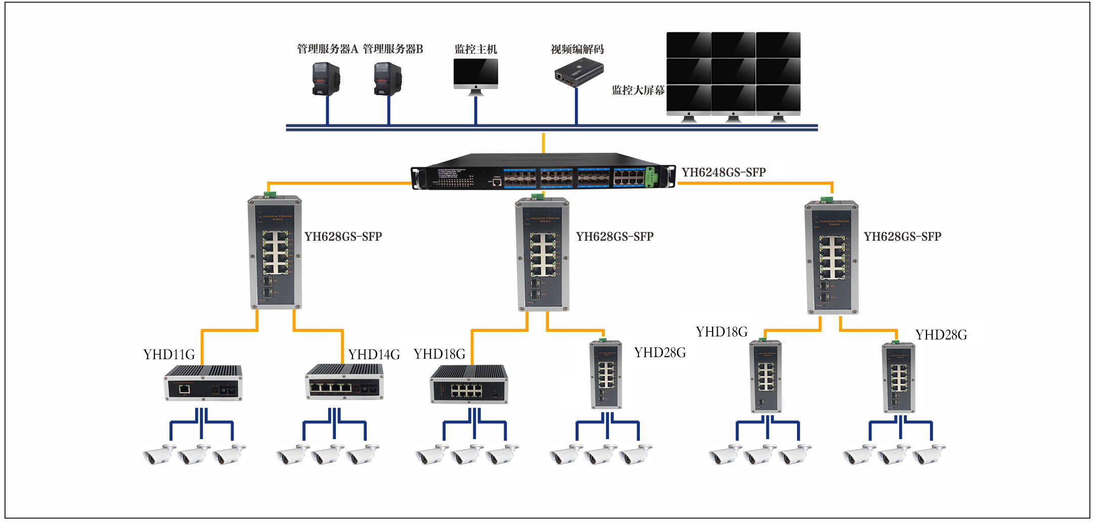系統拓撲結構圖:水電站視頻網絡實現對運行設備進行在線監視